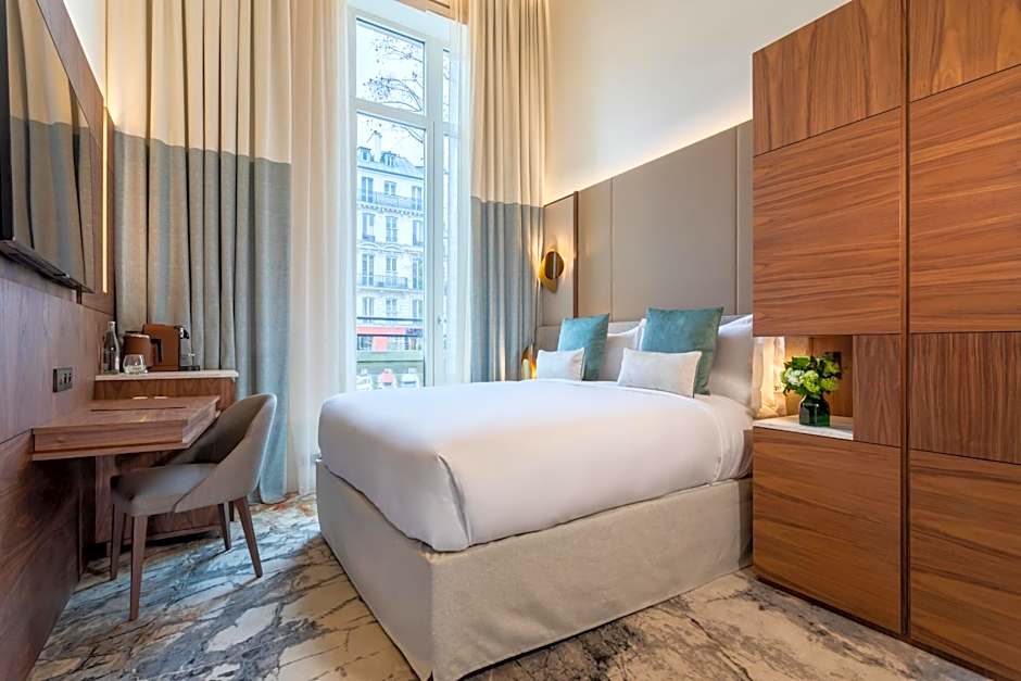 Our 19Sqm Classic Queen room is ideal for a weekend trip to Paris. Relax from your day exploring the many sights around the hotel on our Treca queen bed while enjoying the view of Avenue Marceau. Luxurious amenities were placed in room for your comfort: Dyson hairdryer and Nespresso Machine.